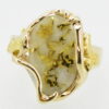 The ring features a natural gemstone known as “Gold Bearing Quartz,” typically mined from deep underground. In most cases, gold found in quartz exists in microscopic amounts, making it virtually invisible. However, this ring boasts an extraordinary rarity as it showcases a very scarce stone that is first cut into slabs, revealing the precious gold vein. Skilled artisans cut, shape, polish, and mount the gold quartz into a 14k gold setting. Embrace the allure of this remarkable Gold Bearing Quartz ring and celebrate the natural beauty of this exceptional gemstone.