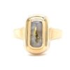 The ring features a natural gemstone known as “Gold Bearing Quartz,” typically mined from deep underground. In most cases, gold found in quartz exists in microscopic amounts, making it virtually invisible. However, this ring boasts an extraordinary rarity as it showcases a very scarce stone that is first cut into slabs, revealing the precious gold vein. Skilled artisans cut, shape, polish, and mount the gold quartz into a 14k gold setting. Embrace the allure of this remarkable Gold Bearing Quartz ring and celebrate the natural beauty of this exceptional gemstone.