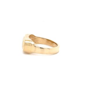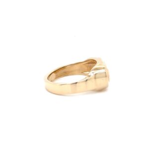 This beautiful lady’s gold quartz ring is expertly crafted in yellow gold. Solid 14k gold, not plated. The smooth, polished surface brilliantly reflects light, capturing attention from every angle. The photos showcase enlarged details of this piece.