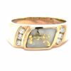 The ring features a natural gemstone known as “Gold Bearing Quartz,” typically mined from deep underground. In most cases, gold found in quartz exists in microscopic amounts, making it virtually invisible. However, this ring boasts an extraordinary rarity as it showcases a very scarce stone that is first cut into slabs, revealing the precious gold vein. Skilled artisans cut, shape, polish, and mount the gold quartz into a 14k gold setting. Embrace the allure of this remarkable Gold Bearing Quartz ring and celebrate the natural beauty of this exceptional gemstone.