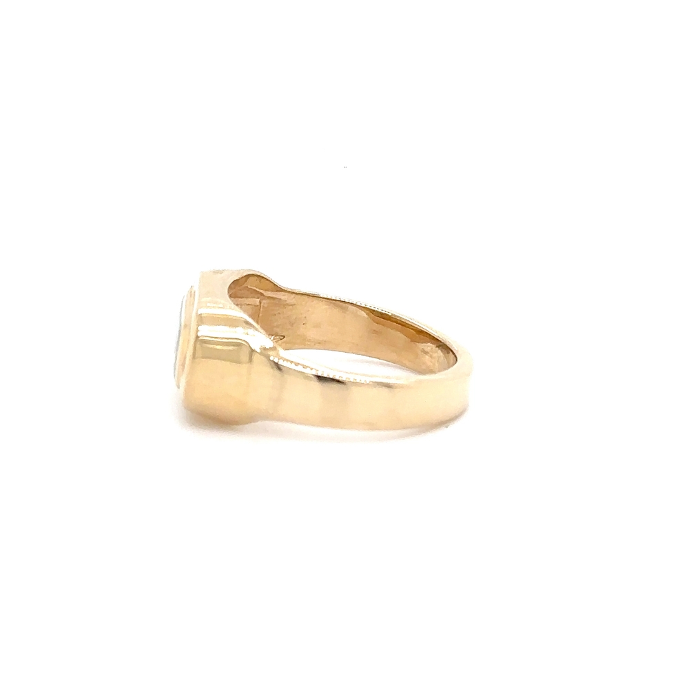The ring features a natural gemstone known as “Gold Bearing Quartz,” typically mined from deep underground. In most cases, gold found in quartz exists in microscopic amounts, making it virtually invisible. However, this ring boasts an extraordinary rarity as it showcases a very scarce stone that is first cut into slabs, revealing the precious gold vein. Skilled artisans cut, shape, polish, and mount the gold quartz into a 14k gold setting. Embrace the allure of this remarkable Gold Bearing Quartz ring and celebrate the natural beauty of this exceptional gemstone.
