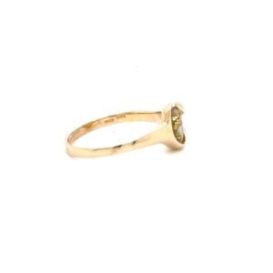 This lady’s gold quartz ring is expertly crafted in 14k yellow gold. The smooth, polished surface brilliantly reflects light, capturing attention from every angle. The photos showcase enlarged details of this piece.