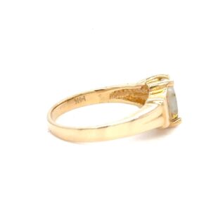 This beautiful ladies gold quartz ring is expertly crafted in yellow gold. Solid 14k gold, not plated. The smooth, polished surface brilliantly reflects light, capturing attention from every angle. The photos showcase enlarged details of this piece.
