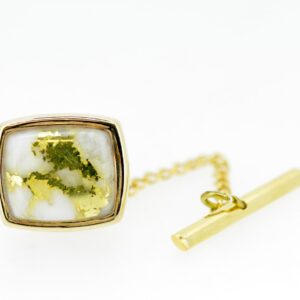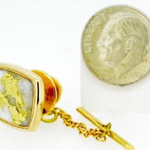 Check out this unique gold quartz tie tack. This tie tack features gold bearing quartz mounted on a 14k gold base. It is about 5/8″ / 15mm tall.