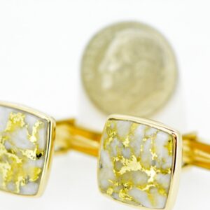 Check out these striking gold quartz cufflinks. These gold quartz cufflinks are about 16mm / 5/8″ soft square shape. The quartz is mounted on a 14k gold base with 14k gold filled wingback findings.