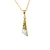 The pendant features a natural gemstone known as “Gold Bearing Quartz,” typically mined from deep underground. In most cases, gold found in quartz exists in microscopic amounts, making it virtually invisible. However, this pendant boasts an extraordinary rarity as it showcases a very scarce stone that is first cut into slabs, revealing the precious gold vein. Subsequently, skilled artisans cut, shape, polish, and mount it into a 14k gold setting. Embrace the allure of this remarkable Gold Bearing Quartz pendant and celebrate the natural beauty of this exceptional gemstone.