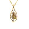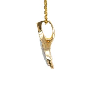 The pendant features a natural gemstone known as “Gold Bearing Quartz,” typically mined from deep underground. In most cases, gold found in quartz exists in microscopic amounts, making it virtually invisible. However, this pendant boasts an extraordinary rarity as it showcases a very scarce stone that is first cut into slabs, revealing the precious gold vein. Subsequently, it is skillfully cut, shaped, polished, and mounted into a 14k gold setting. Embrace the allure of this remarkable Gold Bearing Quartz pendant and celebrate the natural beauty of this exceptional gemstone.