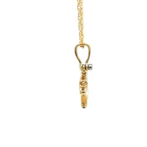 The pendant features a natural gemstone known as “Gold Bearing Quartz,” typically mined from deep underground. In most cases, gold found in quartz exists in microscopic amounts, making it virtually invisible. However, this pendant boasts an extraordinary rarity as it showcases a very scarce stone that is first cut into slabs, revealing the precious gold vein. Subsequently, skilled artisans cut, shape, polish, and mount it into a 14k gold setting. Embrace the allure of this remarkable Gold Bearing Quartz pendant and celebrate the natural beauty of this exceptional gemstone.