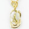 “Gold Bearing Quartz” is a natural gemstone that is usually mined deep underground. Finding snowy white quartz with visible veins of pure gold is extremely difficult. Most of the time, gold mined in quartz is found in microscopic amounts, not at all visible. This very rare stone is cut into slabs, revealing the gold vein, then cut, shaped, polished and mounted into a 14k gold mounting. Because of the veining of the gold, each piece of jewelry is one of a kind. We make this stone into wonderful pieces for both men and women in rings, bracelets, earrings, cuff links, and anything else you might imagine. We can even design a custom piece for you.
