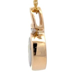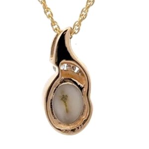 The pendant features a natural gemstone known as “Gold Bearing Quartz,” typically mined from deep underground. In most cases, gold found in quartz exists in microscopic amounts, making it virtually invisible. However, this pendant boasts an extraordinary rarity as it showcases a very scarce stone that is first cut into slabs, revealing the precious gold vein. Subsequently, skilled artisans cut, shape, polish, and mount it into a 14k gold setting. Embrace the allure of this remarkable Gold Bearing Quartz pendant and celebrate the natural beauty of this exceptional gemstone.