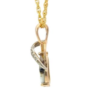 This beautiful gold quartz pendant comes with a 14k gold-filled chain & is mounted in a 14k gold setting. This piece is approximately an inch tall.