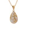 “Gold Gold-bearing quartz” is a natural gemstone that is usually mined deep underground. Finding snowy white quartz with visible veins of pure gold is extremely difficult. Most of the time, gold mined in quartz is found in microscopic amounts, not at all visible. This very rare stone is then cut into slabs, revealing the gold vein, and then cut, shaped, polished, and mounted.