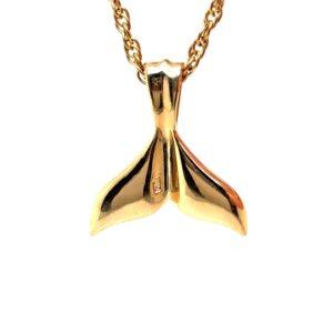 This polished gold quartz & gold nugget whale tail pendant is expertly crafted in 14k gold. The necklace comes with a 14k gold-plated chain. The smooth, polished surface brilliantly reflects light, capturing attention from every angle. The photos showcase enlarged details of this exquisite piece. This piece is a little less than an inch tall and a little less than an inch wide from the tail tips.