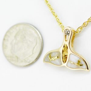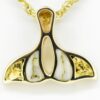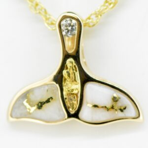 14k gold pendant. Comes with 14k gold plated chain. Photos are enlarged to display detail. “Gold Bearing Quartz” is a natural gemstone that is usually mined deep underground. Finding snowy white quartz with visible veins of pure gold is extremely difficult. Most of the time, gold mined in quartz is found in microscopic amounts, not at all visible. This very rare stone is cut into slabs, revealing the gold vein, then cut, shaped, polished and mounted into a 14k gold mounting. Because of the veining of the gold, each piece of jewelry is one of a kind. We make this stone into wonderful pieces for both men and women in rings, bracelets, earrings, cuff links, and anything else you might imagine. We can even design a custom piece for you.