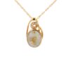 The pendant features a natural gemstone known as “Gold Bearing Quartz,” typically mined from deep underground. In most cases, gold found in quartz exists in microscopic amounts, making it virtually invisible. However, this pendant boasts an extraordinary rarity as it showcases a very scarce stone that is first cut into slabs, revealing the precious gold vein. Subsequently, skilled artisans cut, shape, polish, and mount it into a 14k gold setting. Embrace the allure of this remarkable Gold Bearing Quartz pendant and celebrate the natural beauty of this exceptional gemstone.