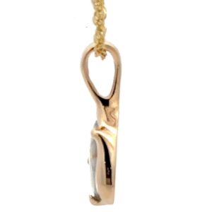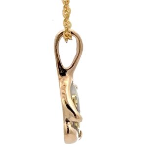 14k gold pendant. Comes with a 14k gold-plated chain. Photos are enlarged to display detail. This piece is approximately 3/4ths of an inch tall.