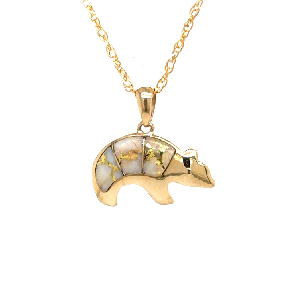 The pendant features a natural gemstone known as “Gold Bearing Quartz,” typically mined from deep underground. In most cases, gold found in quartz exists in microscopic amounts, making it virtually invisible. However, this pendant boasts an extraordinary rarity as it showcases a very scarce stone that is first cut into slabs, revealing the precious gold vein. Subsequently, a skilled artisan cuts, shapes, polishes, and mounts it into a 18k gold setting. Embrace the allure of this remarkable Gold Bearing Quartz pendant and celebrate the natural beauty of this exceptional gemstone.