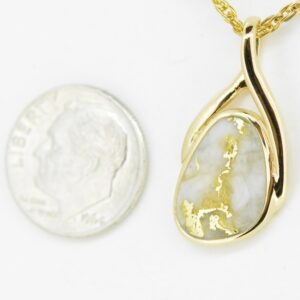 Gold quartz pendant stone is 15×10 mm. 14k gold pendant. Comes with 14k gold plated chain. Photos are enlarged to display detail.