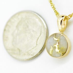 “Gold Bearing Quartz” is a natural gemstone that is usually mined deep underground. Finding snowy white quartz with visible veins of pure gold is extremely difficult. Most of the time, gold mined in quartz is found in microscopic amounts, not at all visible. This very rare stone is then cut into slabs, revealing the gold vein, then it is shaped, polished and mounted into a 14k gold mounting. Because of the veining of the gold, each piece of jewelry is one of a kind! We make this stone into wonderful pieces for both men and women, rings, bracelets, earrings, cuff links, and anything else you might imagine. We can even design a custom piece for you.