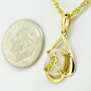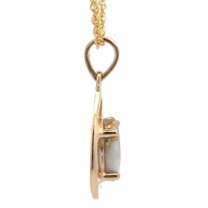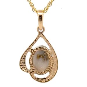 The pendant features a natural gemstone known as “Gold Bearing Quartz,” typically mined from deep underground. In most cases, gold found in quartz exists in microscopic amounts, making it virtually invisible. However, these earrings boast an extraordinary rarity as it showcases a very scarce stone that is first cut into slabs, revealing the precious gold vein. Skilled artisans cut, shape, polish, and mount the gold quartz into a 14k gold setting. Embrace the allure of these remarkable Gold Bearing Quartz earrings and celebrate the natural beauty of this exceptional gemstone.