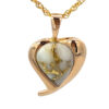 The pendant features a natural gemstone known as “Gold Bearing Quartz,” typically mined from deep underground. In most cases, gold found in quartz exists in microscopic amounts, making it virtually invisible. However, this pendant boasts an extraordinary rarity as it showcases a very scarce stone that is first cut into slabs, revealing the precious gold vein. Subsequently, skilled artisans cut, shape, polish, and mount it into a 14k gold setting. Embrace the allure of this remarkable Gold Bearing Quartz pendant and celebrate the natural beauty of this exceptional gemstone.