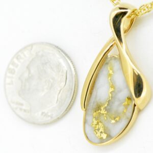 The pendant features a natural gemstone known as “Gold Bearing Quartz,” typically mined from deep underground. In most cases, gold found in quartz exists in microscopic amounts, making it virtually invisible. However, these earrings boast an extraordinary rarity as they showcase a very scarce stone that is first cut into slabs, revealing the precious gold vein. Skilled artisans cut, shape, polish, and mount the gold quartz into a 14k gold setting. Embrace the allure of these remarkable Gold Bearing Quartz earrings and celebrate the natural beauty of this exceptional gemstone.