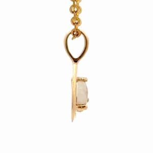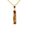 The pendant features a natural gemstone known as “Gold Bearing Quartz,” typically mined from deep underground. In most cases, gold found in quartz exists in microscopic amounts, making it virtually invisible. However, this pendant boasts an extraordinary rarity as it showcases a very scarce stone that is first cut into slabs, revealing the precious gold vein. Subsequently, skilled artisans cut, shape, polish, and mount it into a 14k gold setting. Embrace the allure of this remarkable Gold Bearing Quartz pendant and celebrate the natural beauty of this exceptional gemstone.