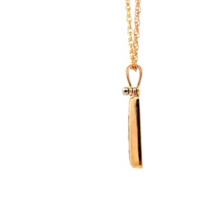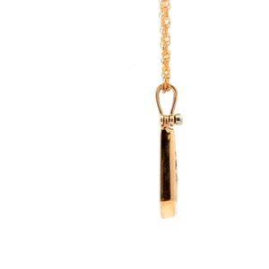 The pendant features a natural gemstone known as “Gold Bearing Quartz,” typically mined from deep underground. In most cases, gold found in quartz exists in microscopic amounts, making it virtually invisible. However, this pendant boasts an extraordinary rarity as it showcases a very scarce stone that is first cut into slabs, revealing the precious gold vein. Subsequently, skilled artisans cut, shape, polish, and mount it into a 14k gold setting. Embrace the allure of this remarkable Gold Bearing Quartz pendant and celebrate the natural beauty of this exceptional gemstone.