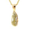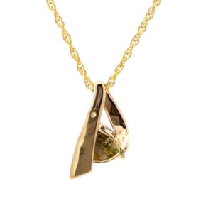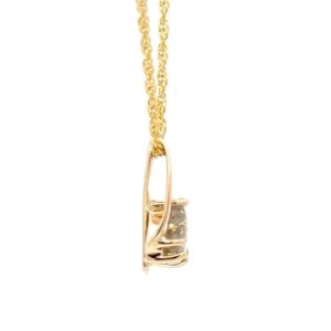 This beautiful gold quartz pendant comes with a 14k gold-filled chain & is mounted in a 14k gold setting. This piece is approxiemetly 12/16ths of an inch.