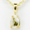 The pendant features a natural gemstone known as “Gold Bearing Quartz,” typically mined from deep underground. In most cases, gold found in quartz exists in microscopic amounts, making it virtually invisible. However, this pendant boasts an extraordinary rarity as it showcases a very scarce stone that is first cut into slabs, revealing the precious gold vein. Subsequently, it is skillfully cut, shaped, polished, and mounted into a 14k gold setting. Embrace the allure of this remarkable Gold Bearing Quartz pendant and celebrate the natural beauty of this exceptional gemstone.