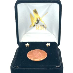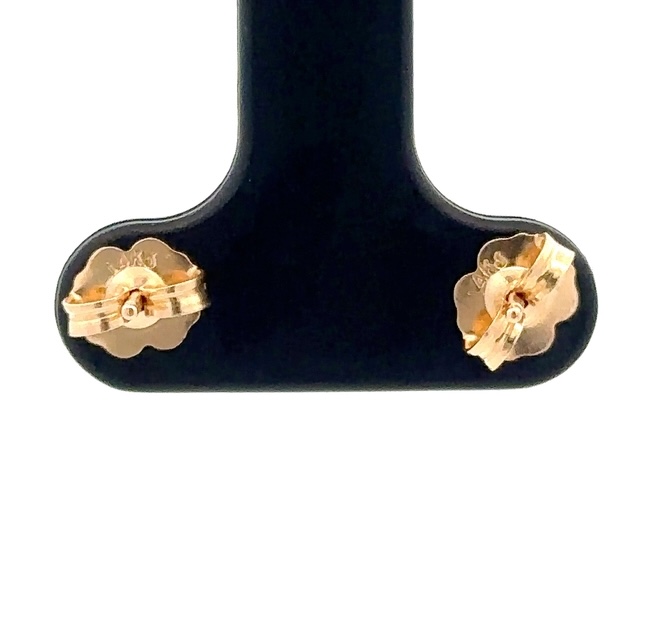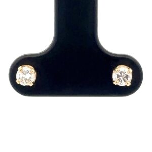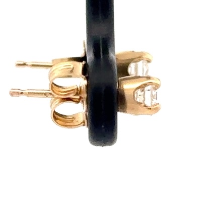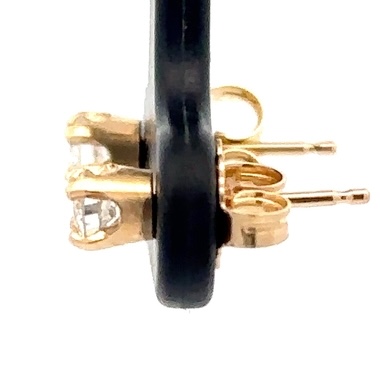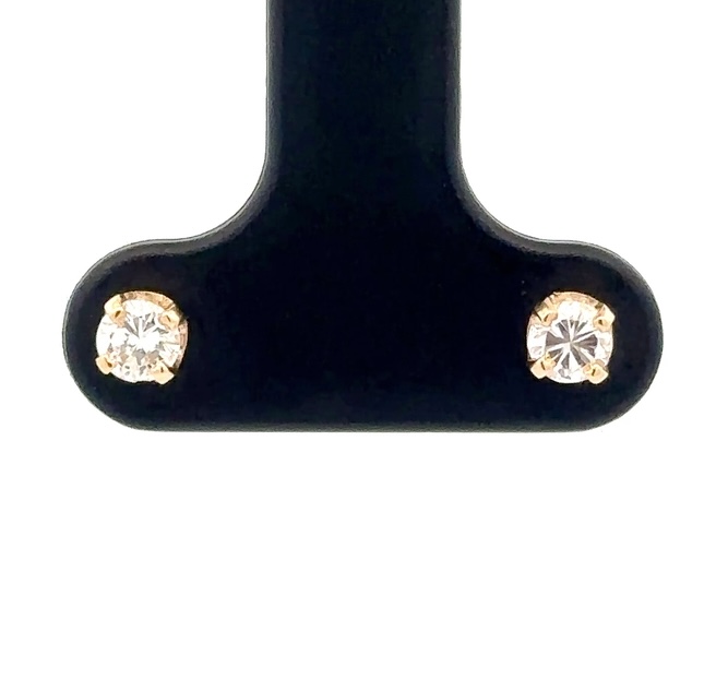 These are yellow gold diamond earrings. They are 14k, the diamonds are .30ct, SI-I, with a color of H-I-J. In this case one of the diamonds is chipped.They were made with the help of our GIA certified gemologist Christopher Robuck.