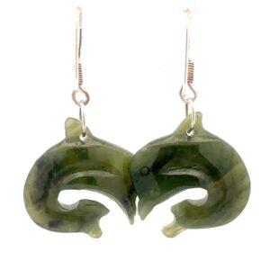 These jade earrings are made of sterling silver and jade found in the Yukon.