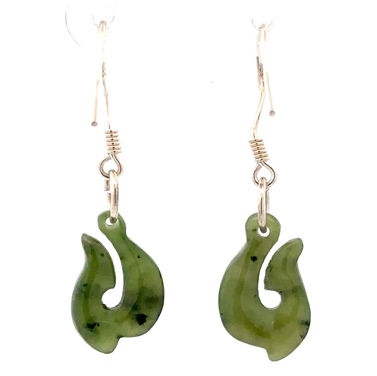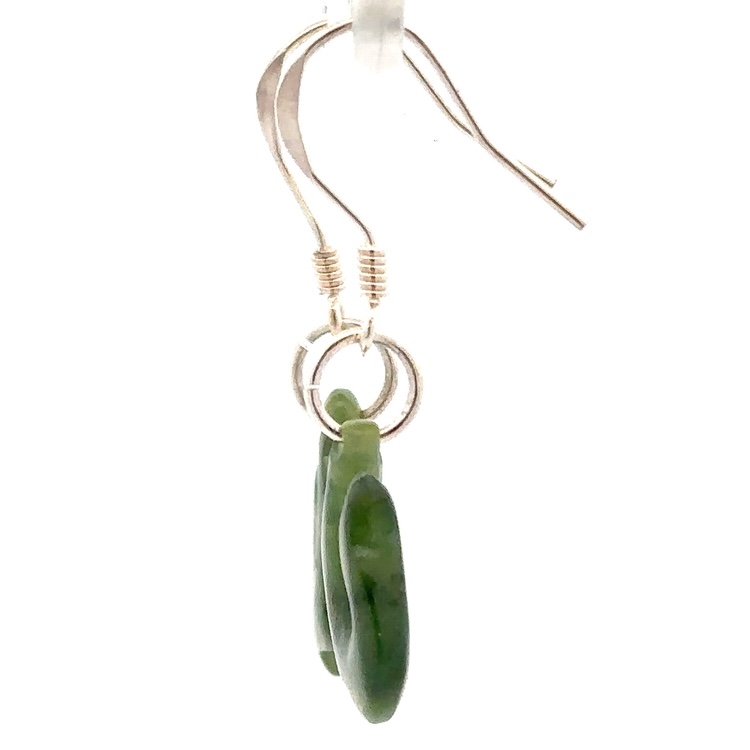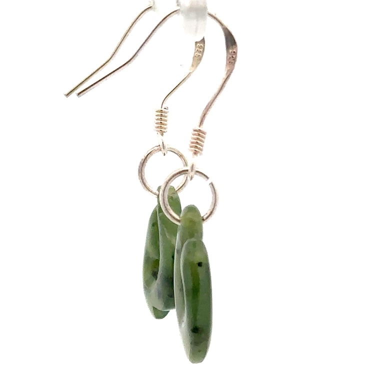These jade earrings are made of sterling silver and jade found in the Yukon.
