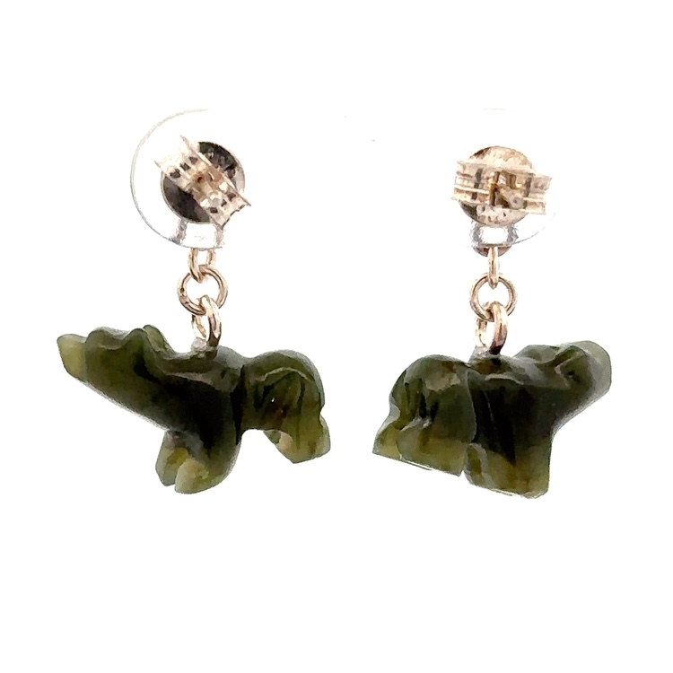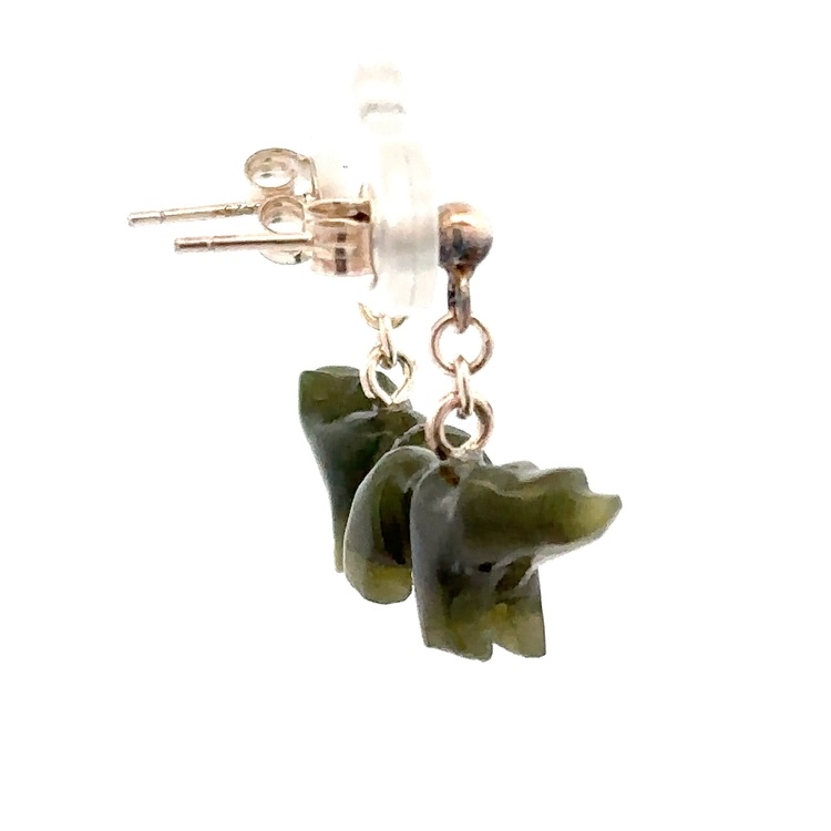 These jade earrings are made of sterling silver and jade found in the Yukon.