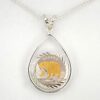 This 1/10 oz .999 fine silver coin pendant has a sterling silver bezel. The sterling silver wheat chain is 18″. The coin is .999 fine silver with 24k plating on part of the image.