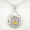 This 1/10 oz .999 fine silver coin pendant has a sterling silver bezel. The sterling silver wheat chain is 18″. The coin is .999 fine silver with 24k plating on part of the image.