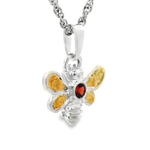 Garnet Bee Gold Nugget & Sterling Silver Ladies Pendant