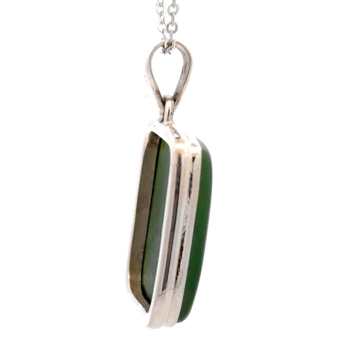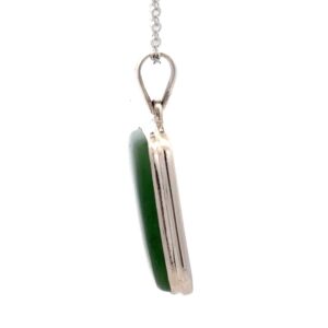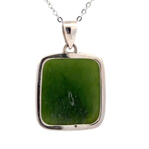 This is a jade square pendant. It is approximately 25mm wide and 37mm tall, including the bail. This piece comes with an 18in display chain.