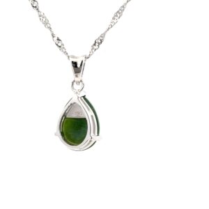 This jade necklace is made of sterling silver and jade found in the Yukon.