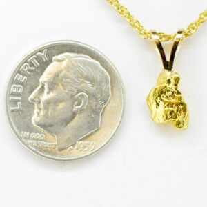 Some of the gold that we buy is made into jewelry, our jeweler has a special way to clean and lightly polish the nuggets to make beautiful, organic pendants. These simple nugget pendants feature a classic 14k split bail. Each pendant comes with an 18″ gold plated chain that is fine for temporary use, we also have a nice selection of 14k yellow gold and 2-tone chains available. They come packaged in a nice gift box.