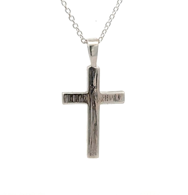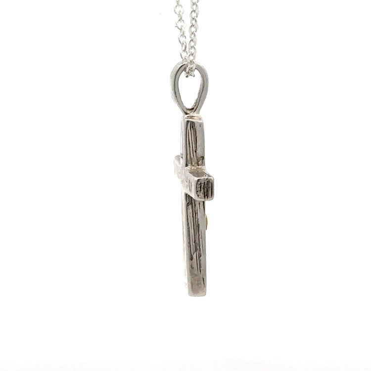 This lady’s estate pendant features sterling silver and inlaid gold nuggets in the shape of a cross.