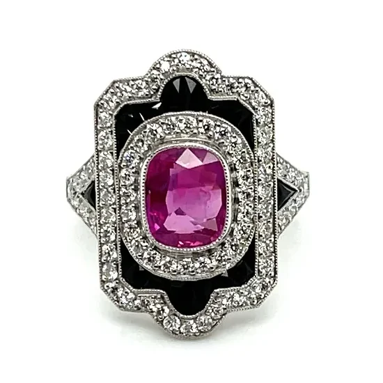 1.70 carat Pink Sapphire, Onyx, & Diamond Ring