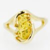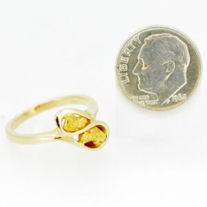 This 2 gold nugget ring is set in a 14k yellow gold setting. The ring features 2 natural Alaskan gold nuggets.
