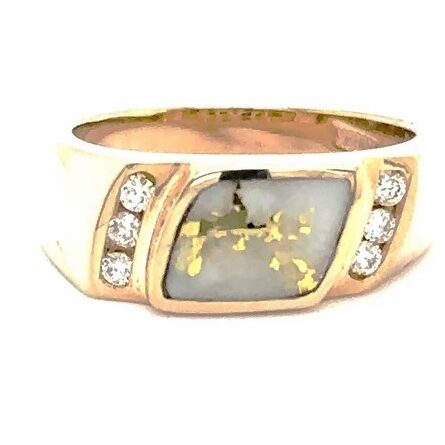This 4mm ladies gold nugget ring is expertly crafted with natural Alaskan gold nuggets carefully placed and soldered onto a 14k yellow gold band. Because we are using natural Alaskan gold nuggets, each ring is one-of-a-kind.