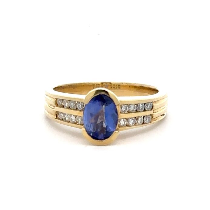 This estate band is mounted in 3.7 grams of 14k yellow gold. Ring size 7.