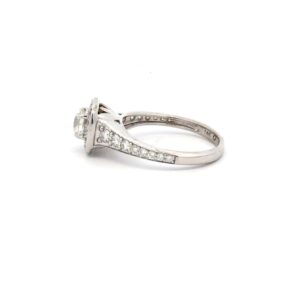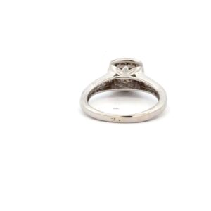 This lady’s estate ring features .90 carat total weight of diamonds. Clarity VS2-I1 and color G-H-I. Mounted in 3.5 grams of 14k white gold. Ring size 5.75.