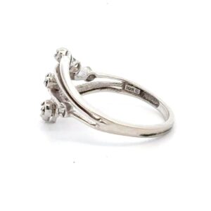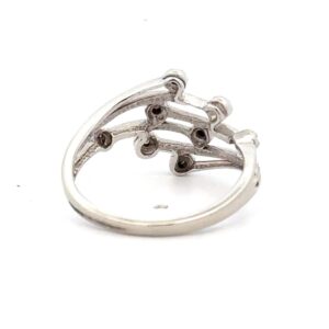 This beautiful lady’s ring is made of 10k white gold and .02 ct diamonds. Size 6 3/4. This ring can be sized. Call for an estimate on sizing.