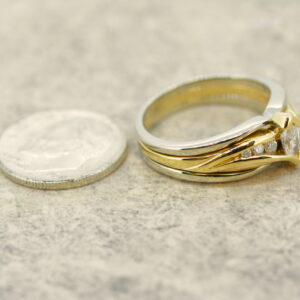 This beautiful lady’s ring is made of 14k 2-tone gold. Diamonds .41 ct. Clarity VS2-SI. Color G-H-I. Size 7. Weighs 6.3 grams.