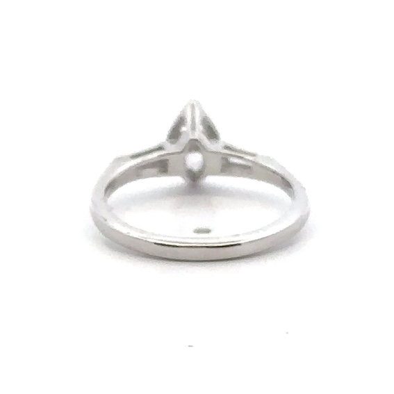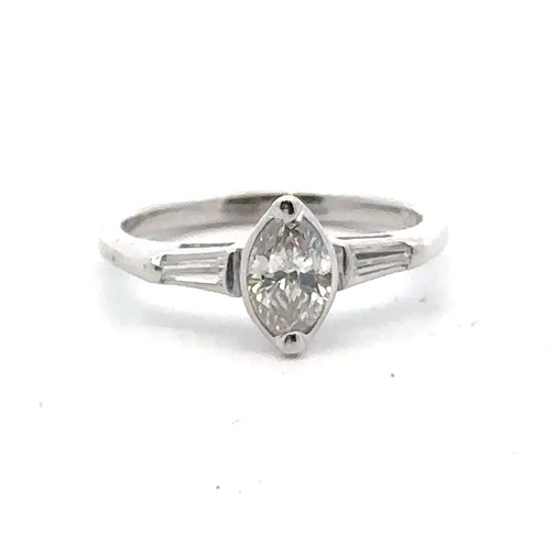 This lady’s estate ring features .35-carats of marquise and .08ct baguette diamonds, clarity I1, and color H. It is mounted in 2.1 grams of 14k white gold. Ring size 4.5.