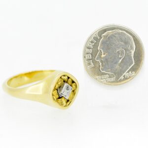 On any given day, local gold miners will come into our shop throughout the year with the gold nuggets they mined that season. We look through their stash and choose the very best nuggets to make into pendants. Miners extract these natural pieces of “placer gold” from the rivers and streams around Alaska. Otherwise known as the “Klondike”. Finding gold nuggets in their natural state is very rare. In fact, gold nuggets constitute only 2% of all found gold. These nuggets themselves will vary in purity from about 75% to 95% pure gold, or 18k-22k. Other minerals, such as silver and platinum, can sometimes mix in with these completely natural pieces.